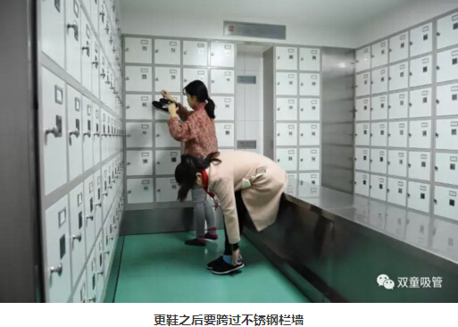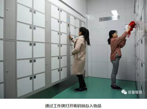 2、員工來到第一更衣區(qū),將自己的私人衣物儲(chǔ)存在柜子中。