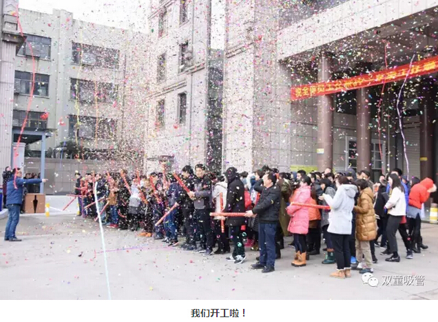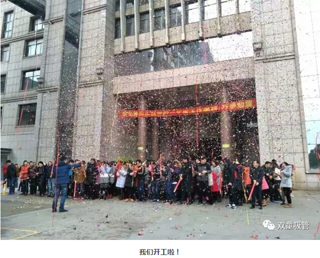 愉快的春節(jié)小長假已經(jīng)結(jié)束!我們也開啟了新的征程,雙童吸管在今天上午8點(diǎn)08分全面開工啦!“雙童”人都已整裝待命,全部切換到工作模式,迎接新的一年!看,我們?nèi)w新老員工匯集在生產(chǎn)廠房的門口,用環(huán)保的禮炮,開始了新一年的努力奮斗!