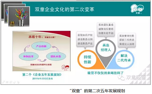 2011年“雙童吸管”開始做第二個(gè)五年規(guī)劃,通過產(chǎn)品創(chuàng)新、團(tuán)隊(duì)再造、體制改革三個(gè)方面進(jìn)行發(fā)展。
