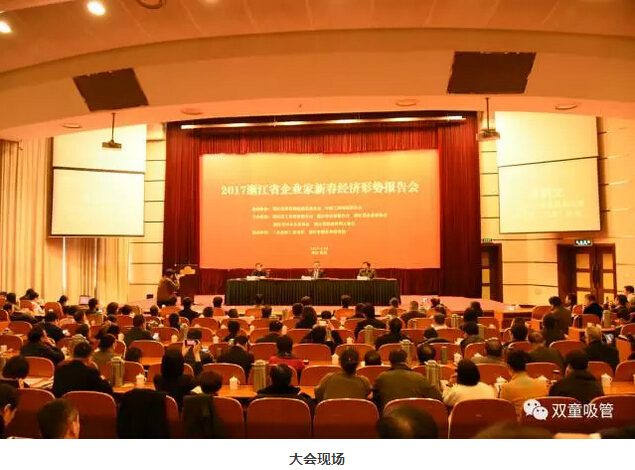 2月16日上午,“2017浙江省企業(yè)家新春經(jīng)濟形勢報告會”在杭舉行,吸管妞和吸管君也趕赴杭州參與了此次會議。原國家工信部部長、全國政協(xié)常委李毅中、浙江省副省長馮飛、省政協(xié)副主席兼省總工會主席張蔚文等出席了本次活動。