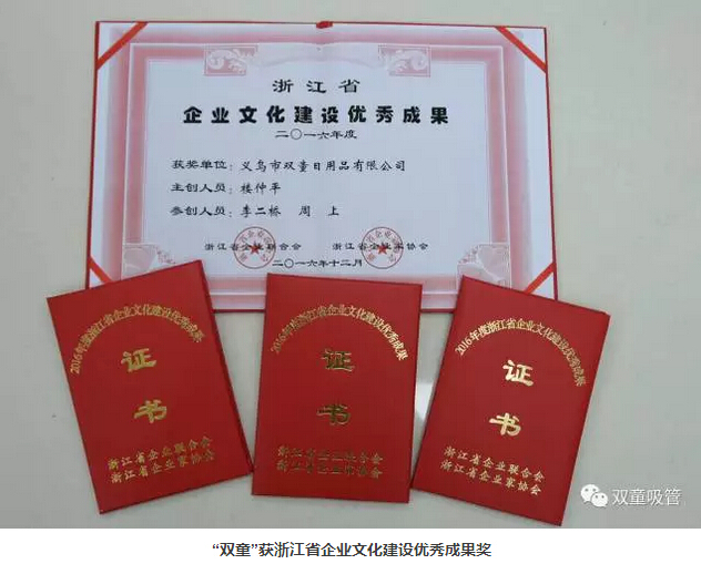 大會上頒發(fā)了浙江省2016年度“企業(yè)文化建設(shè)優(yōu)秀成果”獎,有五家企業(yè)獲得此項殊榮,“雙童”作為義烏唯一一家獲獎企業(yè)也名列其中呢!