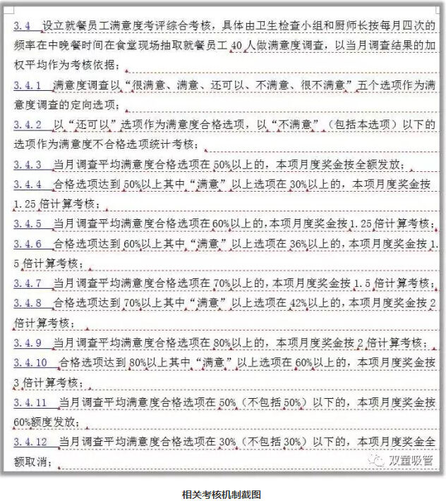 除此之外,我們?cè)O(shè)立了就餐員工滿意度綜合考核,按每月四次在食堂現(xiàn)場(chǎng)抽取就餐員工進(jìn)行滿意度調(diào)查,廚師的考核獎(jiǎng)金也直接和員工的滿意度掛鉤,盡力滿足員工們的就餐需求,足以見(jiàn)得“雙童”對(duì)員工餐飲的重視!
