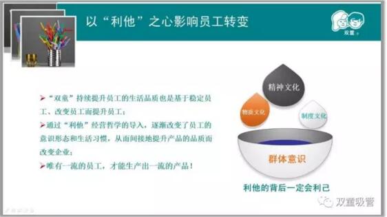 提升員工幸福感的同時,也是基于穩(wěn)定員工、改變員工而提升員工,逐漸改變員工的意識形態(tài)和素養(yǎng),從而間接地提升產(chǎn)品的品質(zhì)而改變企業(yè)。唯有一流的員工,才能生產(chǎn)出一流品!
