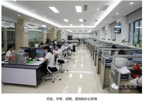 從2015年開(kāi)始,“雙童”開(kāi)始逐步改造行政辦公區(qū),打破員工與管理層之間的行政籬笆,取消董事長(zhǎng)和所有高管的獨(dú)立辦公室,建立了平等、透明、開(kāi)放的辦公環(huán)境?,F(xiàn)在,“雙童”所有的行政員工集體辦公,員工與管理層之間平等相處。