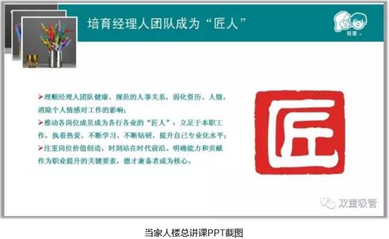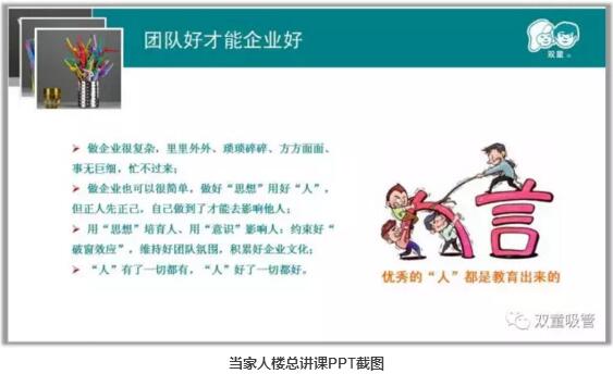 明確了以上問(wèn)題,原先在大家印象中復(fù)雜敏感的團(tuán)隊(duì)問(wèn)題迎刃而解,管理團(tuán)隊(duì)、培養(yǎng)人才變得非常簡(jiǎn)單。用“思想”培育人,用“意識(shí)”影響人,用“制度”約束人,維持好團(tuán)隊(duì)氛圍,積累好企業(yè)文化,何愁企業(yè)無(wú)人可用呢?正是因?yàn)橛辛藘?nèi)心幸福、關(guān)系簡(jiǎn)單、一切圍繞工作展開(kāi)的“雙童”管理團(tuán)隊(duì),“雙童”才能發(fā)展得越來(lái)越好!親,你明白了嗎?