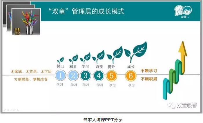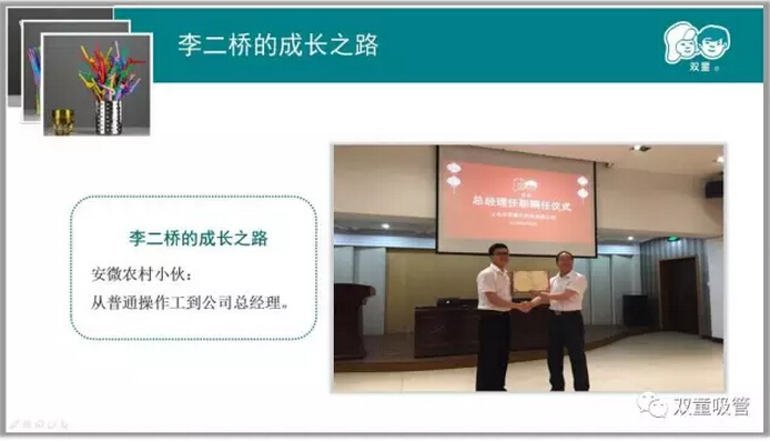 而為了增強(qiáng)說服力,當(dāng)家人還舉了不少“雙童”人自己的例子。從普普通通的一個(gè)員工開始做起,一步步提升進(jìn)步,穩(wěn)扎穩(wěn)打,在“雙童“實(shí)現(xiàn)了事業(yè)家庭的夢想的人不在少數(shù)!樓總說,我們的李總、廠長、車間主任等等,都是我們身邊最鮮活的例子!