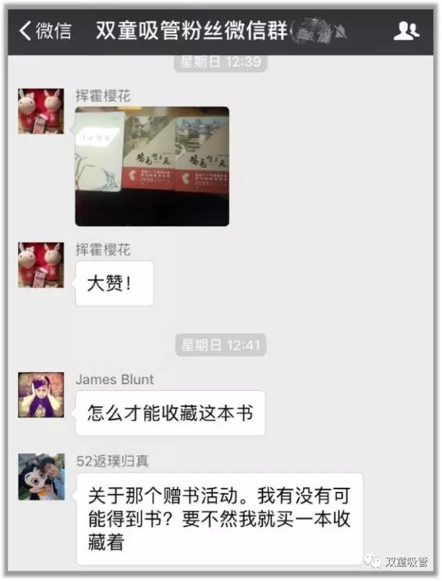 這不,前幾天,吸管妞在微信上舉辦了《雞毛飛上天》贈(zèng)書活動(dòng),反響之好讓吸管妞嚇了一大跳,原來還有這么多的粉絲對(duì)當(dāng)家人樓總“雞毛換糖”的經(jīng)歷感興趣呢!其中,也有一些“雙童”鐵粉在收到書以后給妞發(fā)微信以示感謝,讓妞非常感動(dòng)。