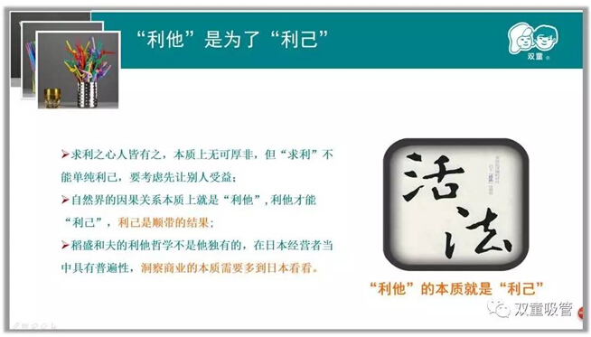 求利之心人皆有之,本質(zhì)上無可厚非,但“求利”不能單純利己,要考慮先讓別人受益。商業(yè)本質(zhì)上就是“利他”,利他才能“利己”,利己是順帶的結(jié)果。