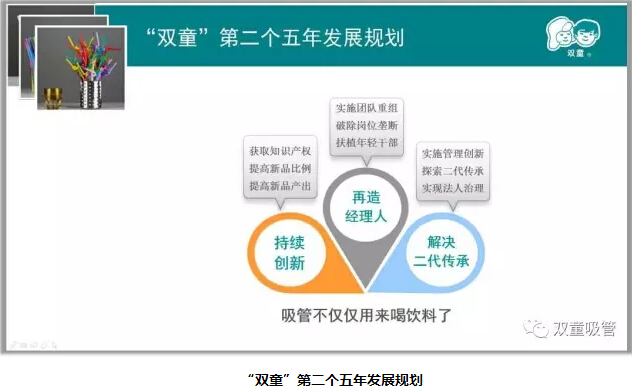 “雙童”堅(jiān)持走專業(yè)化的發(fā)展道路,堅(jiān)守實(shí)業(yè),不多元,不浮躁,不急功近利,強(qiáng)調(diào)“以小博大”,“博”不是拼搏的搏,而是博大的博,就是要以博大的胸懷將一根吸管做精、做強(qiáng)、做到極致。