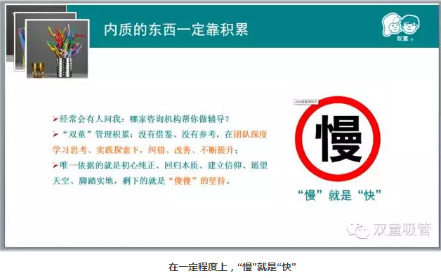 “雙童”也是一樣,不斷地積累。在團(tuán)隊(duì)深度學(xué)習(xí)思考、實(shí)踐探索下,糾錯(cuò)、改善、不斷提升。除了初心純正、回歸本質(zhì),腳踏實(shí)地之外,剩下的就是傻傻的堅(jiān)持。不要嫌自己走得太慢,走的慢才可深入積累做更長!在一定程度上,其實(shí)“慢”就是“快”。
