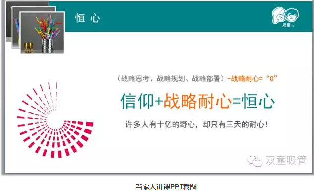 但一部分企業(yè)選擇了專注于自己的產(chǎn)品,專注于自己的行業(yè)。其實(shí)“雙童”一開始也想做許多產(chǎn)品,走過許多彎路。后來,逐漸認(rèn)知到問題所在,逐漸放棄了多元化、放棄大客戶、放棄投資、抗拒誘惑……選擇了堅(jiān)持與專注,回歸一根吸管,最終把一根小小的吸管做到了極致,做到了吸管行業(yè)的領(lǐng)導(dǎo)者!