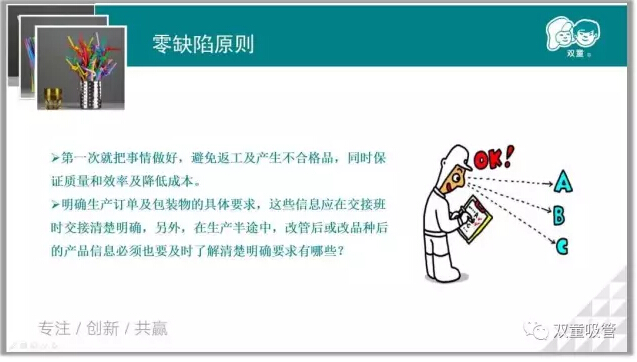 好的質(zhì)量怎么來(lái)?在質(zhì)量管理當(dāng)中,人是最主要的變量,當(dāng)人的思想意識(shí)出現(xiàn)問(wèn)題時(shí),質(zhì)量必然是負(fù)數(shù)。我們的員工更應(yīng)該轉(zhuǎn)變思維意識(shí),秉承零缺陷原則和三不原則,第一次就把事情做好,關(guān)注細(xì)節(jié),避免產(chǎn)生不合格品。質(zhì)量是用心做出來(lái)的,每個(gè)人都用心去做產(chǎn)品,我們生產(chǎn)出的產(chǎn)品才會(huì)更加精細(xì)!