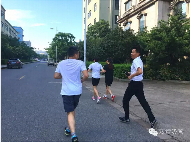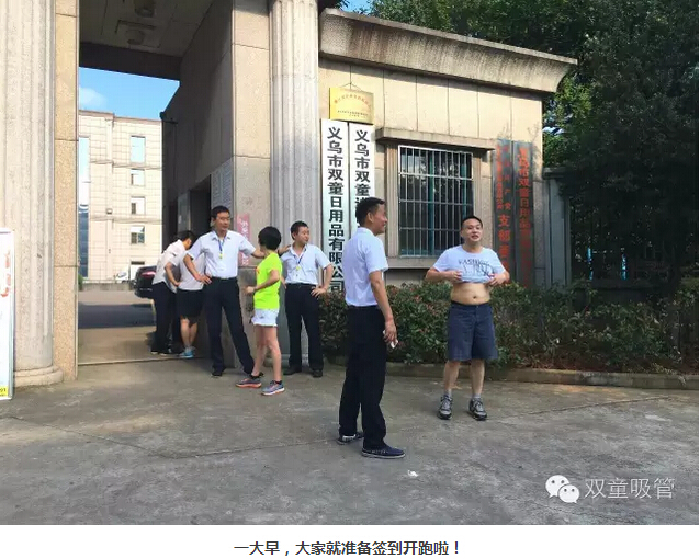 近期,在我們”雙童“內(nèi)部可是掀起了一股“晨跑風(fēng)”,原來“雙童”的運(yùn)動(dòng)周來啦!每天清晨,原本應(yīng)該陸陸續(xù)續(xù)到辦公室上班的童鞋們?cè)缇痛┖昧诉\(yùn)動(dòng)鞋,活力滿滿地出現(xiàn)在門衛(wèi)處簽到,三三兩兩地繞著廠區(qū)跑起步來,下面妞就帶大家去現(xiàn)場(chǎng)看看吧!