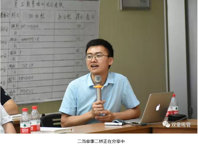 2003年11月,李二橋被任命為吸管車間班組長(zhǎng),負(fù)責(zé)吸管車間六七十號(hào)員工的生產(chǎn)安排和質(zhì)量控制。由于工作出色,2005年8月,剛滿20歲的李二橋就進(jìn)入“雙童”中層行列,被任命為品管部主任,開(kāi)始承擔(dān)起標(biāo)準(zhǔn)化制定的工作。