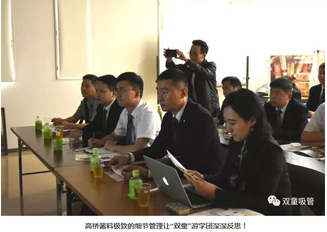 高橋先生也和大家聊到了高橋醬料株式會(huì)社的經(jīng)營理念,也就是追求員工和客戶的幸福感,追求美味和快樂的食文化。在日本有將近1200多家的醬料公司,高橋醬料目前已經(jīng)躋身前8名。但是值得關(guān)注的是,極少公司能和高橋醬料一樣,堅(jiān)持制造100%的純天然有機(jī)食品,他們用極其認(rèn)真甚至苛刻的態(tài)度對待自己的產(chǎn)品,追求產(chǎn)品在衛(wèi)生方面和質(zhì)量方面能夠在行業(yè)中脫穎而出!高橋醬料對產(chǎn)品衛(wèi)生及品質(zhì)的極致追求也讓“雙童”游學(xué)團(tuán)深深反思,為什么我們的產(chǎn)品還會(huì)出現(xiàn)質(zhì)量問題?如何讓“雙童吸管”的品質(zhì)進(jìn)一步提升?高橋醬料給我們提供了借鑒意義,是我們學(xué)習(xí)的標(biāo)桿!