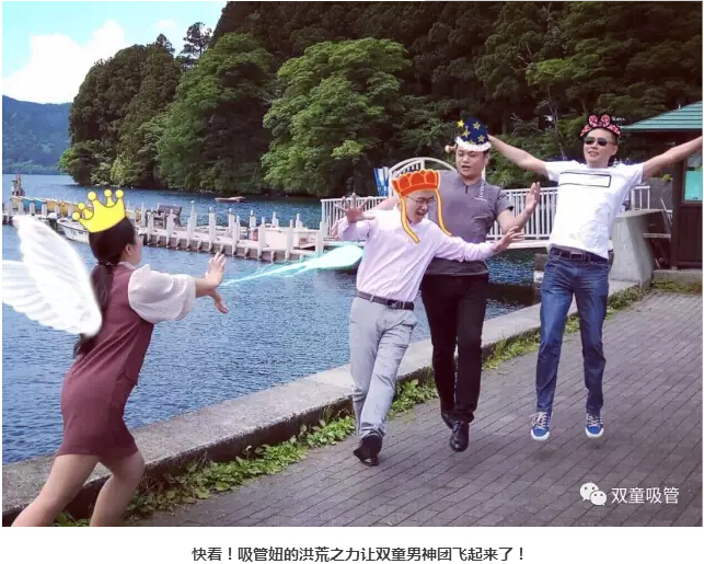 離開大涌谷,我們也順路去了著名的火山湖——蘆之湖。蘆之湖大約形成于三千年前,面積有7平方公里,最深處達(dá)45米,是神奈川縣內(nèi)面積最大的湖泊。在晴天時泛舟湖上,還能看到終年積雪的富士山!我們也在湖邊留下了創(chuàng)意合影,吸管妞的洪荒之力把“雙童”的男神團(tuán)都嚇退啦,發(fā)到朋友圈也獲得了一大波的好友點贊哦!