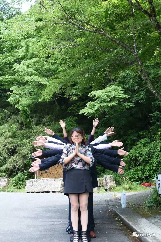 吸管妞在這里也和大家分享一個小細(xì)節(jié):下圖中的大合照,吸管妞和我們的美女同事坐在兩條白色的椅子上。在最右邊還有一條黑色的椅子。這些椅子就這樣露天放在景區(qū)里,供游人休憩合影所用。雖然剛下過小雨,這些椅子卻干干凈凈,沒有水滴,也沒有銹跡,可以想見日本人的及時維護(hù)和細(xì)心程度。在每批游客用完椅子后,都會細(xì)心地將椅子放回原位。這是日本人的自律,值得大家一起學(xué)習(xí)!