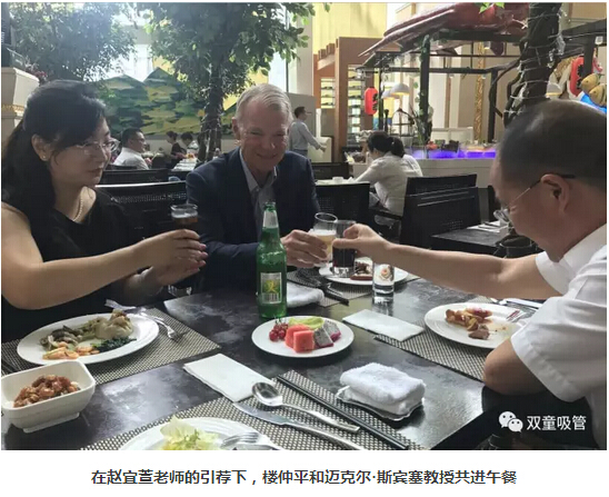 在下午會議開始之前,“雙童”樓仲平來到餐廳就餐,正好諾貝爾獎獲得者邁克爾·斯賓塞教授也前來餐廳就餐,在思謀會秘書長趙宜萱老師的引薦下,大家坐在一起享用午餐,并共同開展了午餐對話!