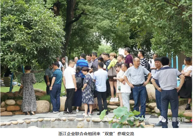 上周四,浙江省企業(yè)聯合會、企業(yè)家協會組織了來自磐安、江山、東陽、臺州等地的近百位企業(yè)主們組團來到“雙童”參觀交流,了解“雙童”的經營理念。