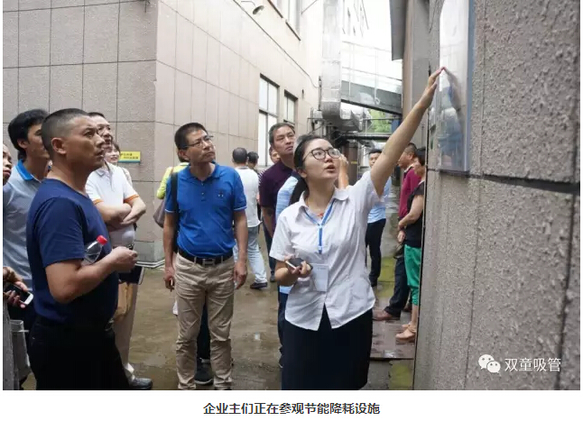 參觀的第一站是我們的節(jié)能降耗系統!吸管妞向大家詳盡地介紹了廢水回用系統、雨水收集系統、垃圾分類系統,光光是雨水收集系統,每年就能為“雙童”節(jié)約100萬水費呢!企業(yè)主們對“雙童”這種生態(tài)循環(huán)、節(jié)約資源的做法十分認可,更對樓總多年前能有這樣的環(huán)保理念十分敬佩!