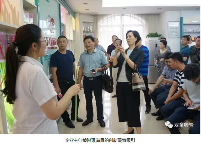 移步樣品房,大家都被琳瑯滿目的各類吸管所吸引,尤其是各類功能情趣的創(chuàng)新吸管,它顛覆了大家腦海里幾分幾厘的普通吸管,而是轉變?yōu)閹讐K錢一支的高端產品,更是讓每個人都嘖嘖稱奇,贊嘆“雙童”的創(chuàng)新力之強!