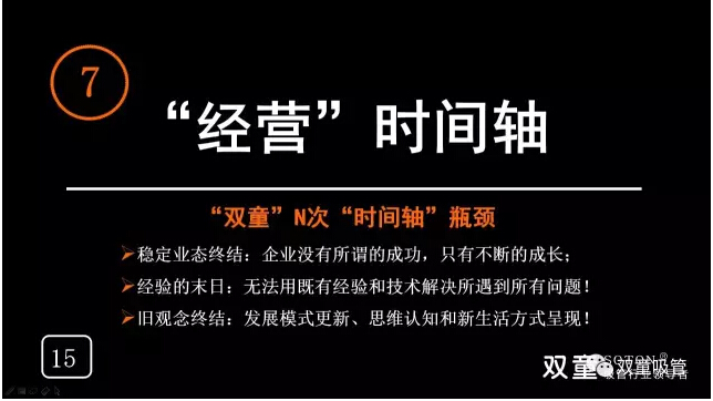 答:“在‘雙童’,教育成為我們很重要的事情,我們每個月都會開展學習會,所有員工每個月都要保持八個小時的學習時間。在企業(yè)內部我自身也從企業(yè)管理工作者逐漸轉變?yōu)閯?chuàng)業(yè)研究和管理教育工作者。所以做企業(yè)和講課都是在教育,但我每周只安排一次課程,權衡好時間做好企業(yè)內部的事情?!?/span>