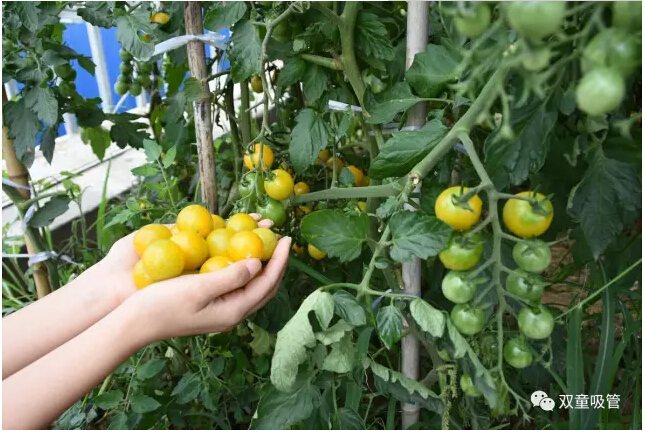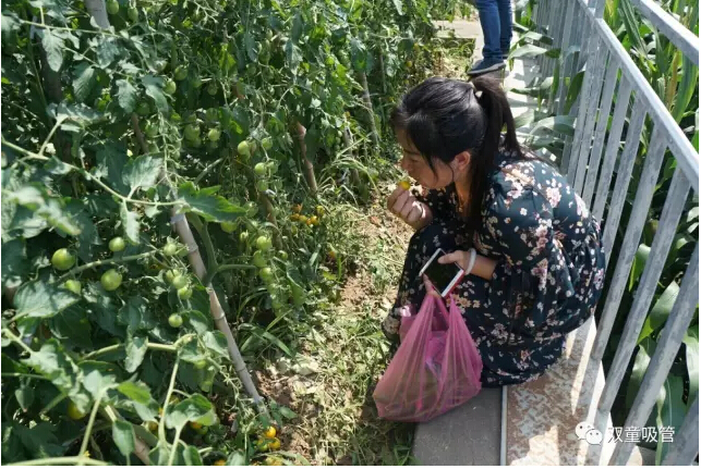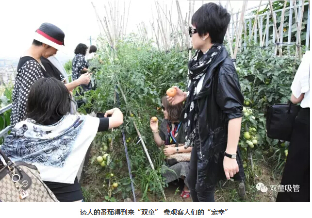 再看看一旁的番茄,紅的、黃的……一口咬下去,盡是香甜可口!誘人的番茄每次都會得到來“雙童” 參觀客人們的“寵幸”,大家也都很喜歡在我們的菜園子里多呆一會,體會一下當(dāng)“快樂農(nóng)夫”的感覺!
