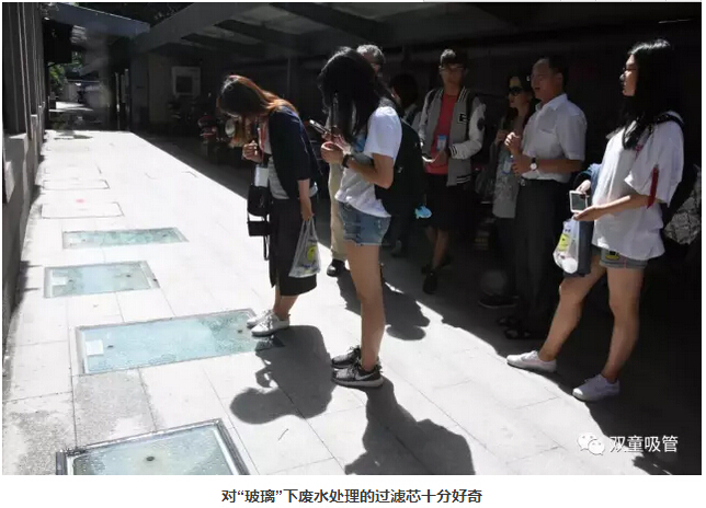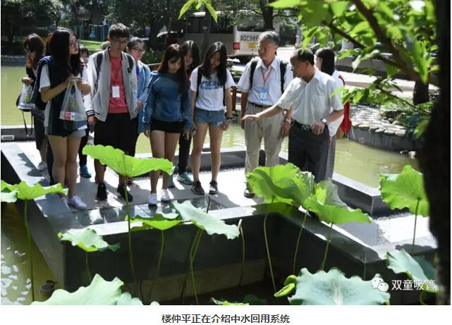 首先,大家一起參觀了中水景觀池、雨水收集池、垃圾分類房等節(jié)能降耗系統(tǒng)。其實,早在2003年,樓仲平就向日本學習,在建廠之初就把節(jié)能降耗和綠化生態(tài)想在了前面,建設了一套簡單實用的節(jié)能降耗系統(tǒng)。這些設施不僅減少了對環(huán)境的污染,每年還為企業(yè)節(jié)省了兩三百萬!使“雙童”成為了綠色生態(tài)、節(jié)能環(huán)保、無污染、零排放的花園式生態(tài)工廠。師生們紛紛表示原來以為大陸的企業(yè)都是薄利多銷,粗放經(jīng)營,想不到“雙童”在十幾年前就有如此環(huán)保節(jié)能的理念!