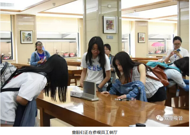 接著,大家來到了“雙童”的員工餐廳,樓仲平也介紹道:“‘雙童’有95%以上都是外來農(nóng)民工,不僅要解決員工們的工作,更要保障員工的生活。所以,‘雙童’基于人性的需求,一直以來十分注重對員工的飲食供應,聘請高級廚師每天為員工做出優(yōu)質(zhì)可口的餐飲!員工在餐廳就餐全免費,員工家屬到餐廳就餐也享受半價優(yōu)惠!另外員工的餐飲都是三菜一湯的標配,員工們使用后的所有碗筷都由食堂阿姨進行清洗和消毒。”大家在看到如此精細的就餐環(huán)境和硬件后都十分羨慕員工們呢!