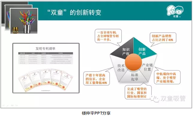 “雙童”樓仲平介紹,“雙童”一直以來十分注重創(chuàng)新和科技的投入。2003年提出的小客戶原則就是對“雙童”商業(yè)模式的創(chuàng)新,小客戶原則的案例也被各個大專院校作為案例收藏。2005年之后,“雙童”進行不斷的創(chuàng)新、研發(fā)設備,產(chǎn)品也從原來的幾種達到了幾百種產(chǎn)品。