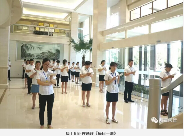 有了這本《每日一則》,員工們的晨讀活動就有材料啦!俗語說:“書讀百遍,其義自見”,通過誦讀活動,將“雙童”的企業(yè)文化灌輸給員工們,根植于員工內(nèi)心深處,潛移默化地改變?nèi)w員工的思維認知!