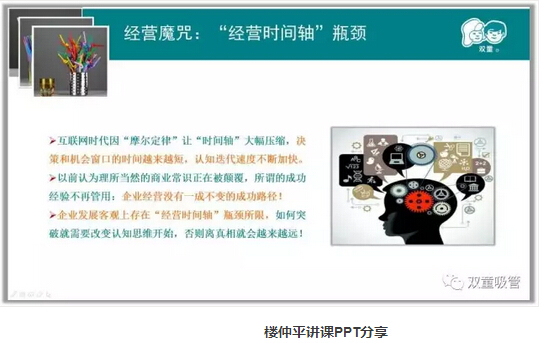 如何來解決這樣的難題呢?樓仲平也圍繞此話題進行了分享:“企業(yè)的轉型絕不能等待環(huán)境所逼下去改變,一定要自我變革。而企業(yè)的一系列改變,無論是變革、轉型、超越,都取決于一個人:就是企業(yè)領導者。 所以在一定程度上:老板不解眼前憂,應在環(huán)境改變之前,實現(xiàn)自我變革和迭代!”