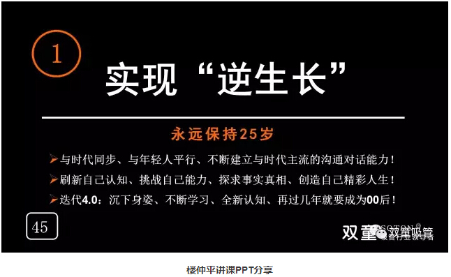 “比方說我自己原來就是小學文化、草根創(chuàng)業(yè),后來逐漸認知到知識的重要性。于是,通過在浙大學習進修五年對自己的知識積累進行重構,通過迭代進行知識的不斷更新,在這期間積累了不少管理理念和商業(yè)知識,從六零后迭代為八零后。早在1997年我就成為了中國的第一批網(wǎng)民,通過互聯(lián)網(wǎng)與世界保持同步,讓“雙童”在激烈的商海競爭中得到了更多先機,在轉型過程中也促使自身從八零后迭代為九零后!接下來,我還將通過不斷學習和認知迭代為00后。所以,我認為自己一直是25歲,也希望大家用時代的思維看問題,與年輕人為伍!”