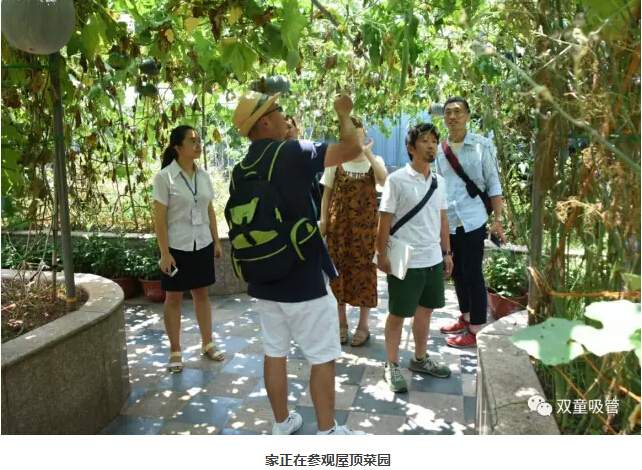 日本客人們也在參觀過程中,實地感受了“雙童”綠色生態(tài)的廠區(qū)環(huán)境。尤其是到了九樓空中菜園后,大家對滿園的瓜果蔬菜非常感興趣,認為即使在日本,也很少有這么好的空中菜園!