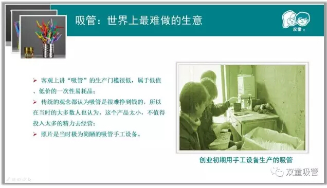 “雙童”在經(jīng)營(yíng)過(guò)程中首先意識(shí)到品牌的重要性,從而搶占先機(jī)將當(dāng)時(shí)全國(guó)吸管廠都在用的一個(gè)標(biāo)識(shí)“占為已有”。