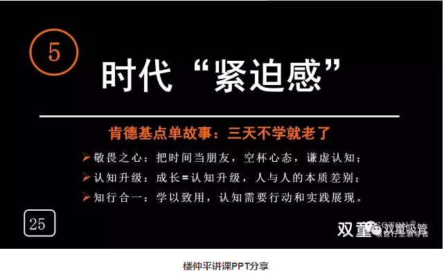 時代“緊迫感”:“雙童”樓仲平在時隔幾天去肯德基時,發(fā)現肯德基已經在自助點單了,而自己還在傻傻的等工作人員點餐!這也告訴我們要不斷地學習,三天不學你就老了!舊觀念終結,發(fā)展模式層出不窮,新的生活方式不斷呈現,行業(yè)變化之快,超出想象,如果你不學習就要被淘汰,你就“老了”!