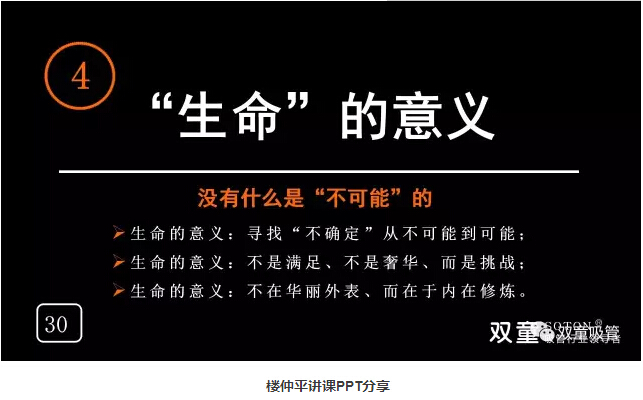 “生命”的意義:“雙童”樓仲平通過自己的經歷告訴大家沒有什么是不可能的:沒人設計節(jié)能降耗,就自己學設計,在樊登讀書會金華分會周年慶促銷活動時,樓仲平用六個小時爭取到58個會員。我們要選擇自己想要的方式選擇自己的人生,千萬不要抱怨,抱怨是最大的瓶頸!生命的意義在于尋找“不確定”,從不可能到可能,在于不斷地挑戰(zhàn)和內在修煉!