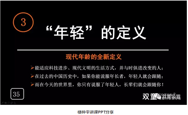 “年輕”的定義:能適應現代全新的生活方式,并與時俱進的人就是年輕人!在過去的中國歷史中,如果你能說服年長者,年輕人就會跟隨;而在今天的世界里,你只有說服了年輕人,長輩們就會跟隨你!