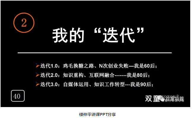 我的“迭代”:“雙童”樓仲平通過自身不斷的學習:在浙大學習進修、學習電腦設計,認知到自媒體作用,與年輕人鏈接、培養(yǎng)團隊,自己轉變教育工作……不斷否認自我、重新認知,實現迭代!