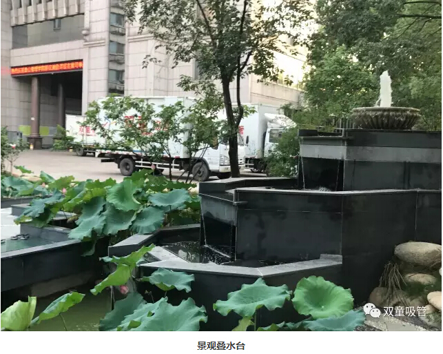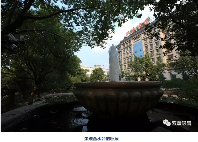 經(jīng)過(guò)九曲橋,來(lái)到湖邊的景觀疊水臺(tái),一道噴泉沖天而起,散開(kāi)漫天花雨,沖入水池里的水不停地翻滾著,倒影迷幻,美麗極了!