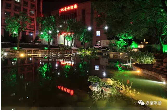 當(dāng)夜幕降臨,走在鑲嵌在地面上的鵝卵石小徑上,掩映在綠樹(shù)成蔭下的路燈也是美麗極了!夜色初上,朦朦朧朧的淡淡燈光,與月色交相輝映,夜幕下的“雙童”也別有一番風(fēng)味!