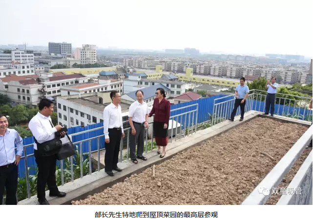 在交流過程中,有陪同領(lǐng)導談到了“雙童”的屋頂菜園,部長先生一聽也非常感興趣,雖然時間已經(jīng)超時,但部長先生表示想要去看看。原先,考慮到外部高溫天氣,樓仲平本沒有安排參觀屋頂菜園,既然部長先生如此感興趣,“雙童”樓仲平也陪同部長先生來到了九樓的屋頂菜園,門一打開,當看到滿園的瓜果蔬菜時,大家都興奮極了!看到碩大的冬瓜時,部長先生更是高興的不得了,還邀請樓仲平一起合影呢!她說道:“我真是太喜歡‘雙童’了!