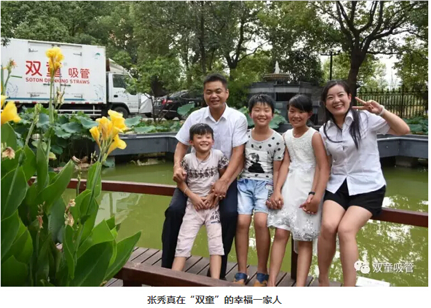 三個孩子生于公司長于公司,一出生就有了幾百個叔叔阿姨、哥哥姐姐。“雙童”的生活環(huán)境讓孩子們養(yǎng)成了良好的衛(wèi)生習(xí)慣,孩子們總說,“我有兩個家,一個是奶奶家,一個就是“雙童吸管”——爸爸媽媽的家!”一家五口早已對“雙童”有了深厚的感情!