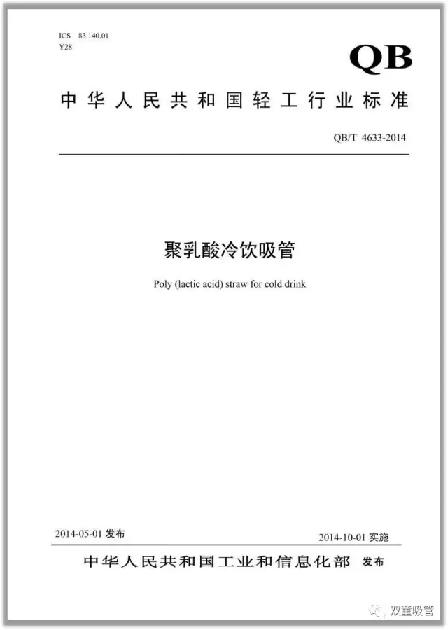 “雙童”主導(dǎo)起草的 QB/T《聚乳酸冷飲吸管》國(guó)家行業(yè)標(biāo)準(zhǔn)