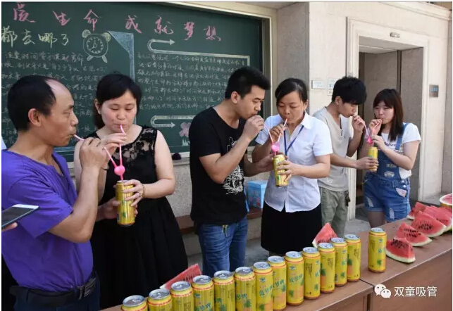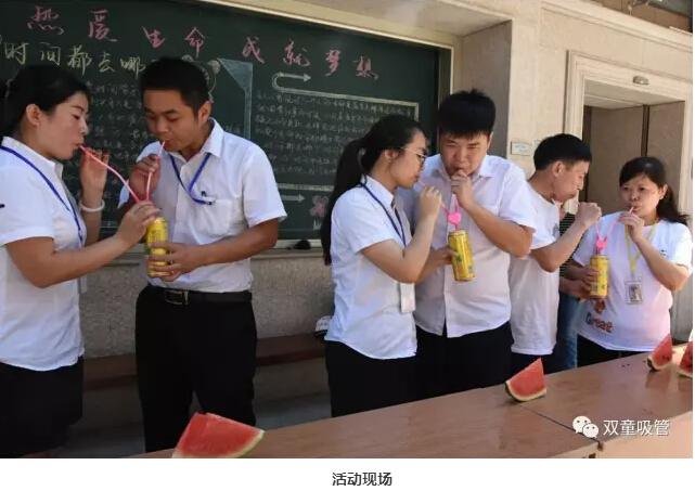 這不,昨天中午12點(diǎn),我們在宣傳欄前舉辦了“秀恩愛”趣味大賽。報(bào)名參賽的情侶和夫妻們用“雙童”的愛心吸管共同喝一瓶飲料,喝完飲料馬上進(jìn)入到“喂西瓜”環(huán)節(jié),用時(shí)最短的情侶還有豐厚的獎(jiǎng)品呢!