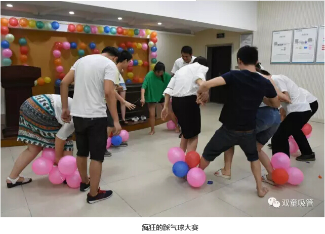 吃飽喝足,我們的七夕晚會也正式開始!后勤科也準(zhǔn)備了很多浪漫游戲環(huán)節(jié)和豐厚的獎(jiǎng)品。游戲現(xiàn)場最激動(dòng)人心的就屬踩氣球環(huán)節(jié)啦!現(xiàn)場的情侶和單身男生女生報(bào)名上場,一男一女搭配,每組成員左右腳捆綁五個(gè)氣球,并互相踩其他小組的氣球,最后氣球數(shù)量剩余最多的組合獲勝!看,男生們都護(hù)著自己的女伴呢!
