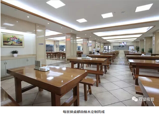 優(yōu)質(zhì)硬件是保障優(yōu)質(zhì)餐飲的前提,所以,“雙童”五星級員工餐廳內(nèi)的設(shè)施都配備了最好的硬件,以保障餐飲的品質(zhì)!就拿網(wǎng)友熱議的員工餐廳這張桌子來說,一張就要15000元,餐廳內(nèi)光光餐桌的總投資就達到70多萬。每一張桌子重達四五百斤,是樓仲平特地去東陽市中國紅木家具城挑選由“木中之王”的柚木(也稱胭脂樹)定制而成,特點是紋理線條優(yōu)美,所以每張餐桌的顏色都很漂亮,十分細膩!