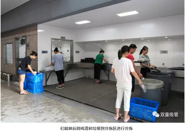 就餐完后,員工們會將所有的殘渣和垃圾帶走,到分揀區(qū)進行分揀歸置。碗筷該如何擺放、飯菜殘渣如何分揀…… 員工們都養(yǎng)成了規(guī)范意識 。所以我們的餐桌還是十分干凈,下一批就餐員工可以直接就餐,不需要阿姨擦拭。