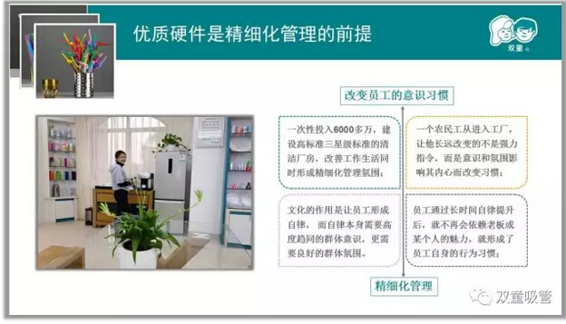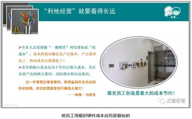 很多人都會問“雙童”做“一根吸管”為何要給員工使用“五星級”硬件,為何要用如此高的成本經(jīng)營?“雙童”當(dāng)家人樓仲平曾對此疑問作回應(yīng):當(dāng)員工用最好硬件時成本反而是最低的。一向節(jié)省的當(dāng)家人為何會這么說?對此,吸管妞將推出關(guān)于“雙童”高品質(zhì)管理的背后邏輯系列文章,首先和大家分享第一篇: