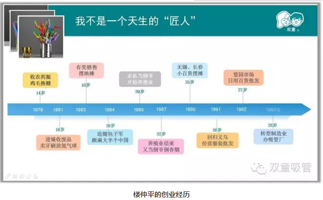 1994年4月,偶然的機(jī)會(huì)讓我再次選擇“一根小吸管”作為重新創(chuàng)業(yè)的起步,無數(shù)次的創(chuàng)業(yè)失敗使我在經(jīng)營“雙童”之后選擇了更多的堅(jiān)守和專注,從而逐漸拋棄了一夜暴富的急功近利,減少了唯利是圖的投機(jī)心理,深刻認(rèn)知到創(chuàng)辦企業(yè)的意義所在,始終關(guān)注事物本身,全身心投入把事情做到更好。